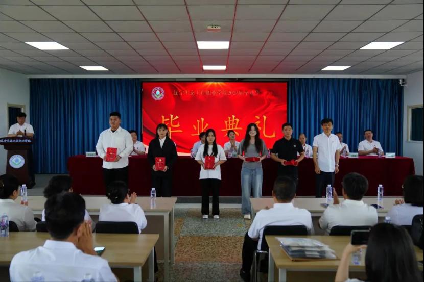 副院长潘玉昆、副院长于海明向学生代表颁发毕业证书。